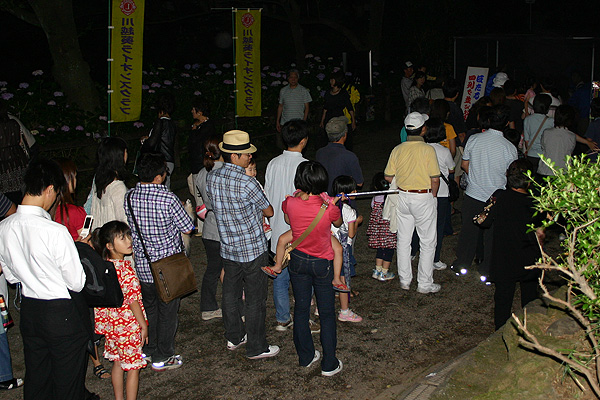 6月13日、川越仙波東照宮で「第7回ホタル祭り」が開かれました。入場料が無料な上、事前申込みも必要がないとのことで、たくさんの人がホタルを一目見ようと訪れ、50m近くの行列ができました。 特別に設置された大きな網のハウスに約2,000匹のホタルが放たれ、ハウス内は一気に幻想的な空間に変わりました。 ホタルとの距離がとても近く、体の近くまで飛んできます。 とても楽しく貴重な体験なのですが、残念なことに今回の「ホタル祭り」は一日のみの開催です。 来年以降、もっと開催日が増えるいいなぁっと感じました。