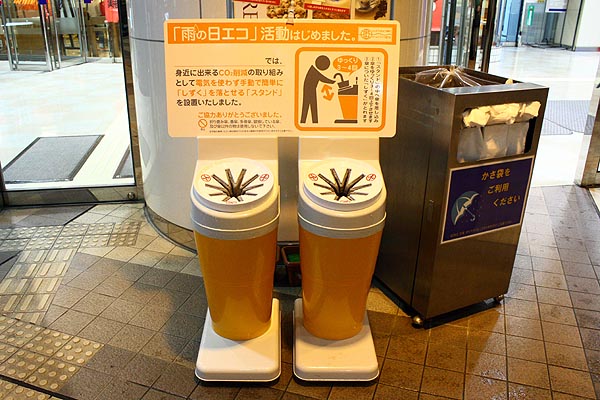 傘のしずくを落とせるスタンドです。川越駅前のアトレで見つけました。