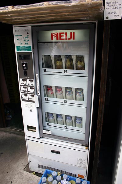 今日の川越は暑かった。にもかかわらず、ここ時の鐘付近や蔵の町通りは、お盆休みでもあり、 大勢の観光客で賑わっていました。 そこで、なぜかたくさんの人が買い求めるものを発見! 近づいてみると・・・ なんと!そこには牛乳の自動販売機が!! 暑さなのか?珍しさなのか?はたまたなつかしさなのか? とにかく大人気のようで、たくさんの空き瓶が残されていました。 写真を撮っている間にも、次から次へと買い求める観光客の皆さん。 また、カップルの方が・・・