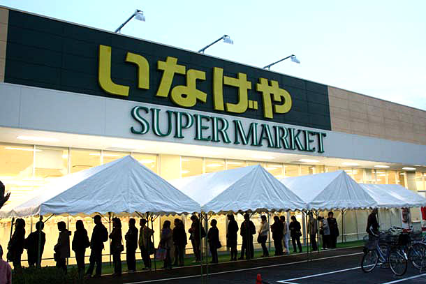 11月18日(水)川越市旭町に「いなげや」と「しまむら」が併設された大型ショッピングセンターがオープンします。 上の写真は16日夕刻のものですが、まだオープン前なのに長い列が出来ていました。 この列は、「いなげや」旭町店のオープンに先立ち「いなげや ふぁん」の会員カード登録に集まった方々です。 お買い物には、やっぱり会員カードがあったほうが”お得”ですよね!! 旭町「いなげや」、「しまむら」は300台の大駐車場を完備し、18日(水)9時30分オープンです。
