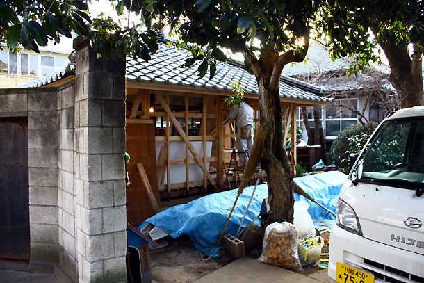 川越一番街は文化財保存地区のため、勝手に家を建て直したりすることはできず、許可を得て、古く危険を伴うようなところの改修工事をします。 最近一番街のあちこちで見受けられますが、歴史的建造物の「陽気づくめ川越教会」でもその流れなのか敷地手前にある炊事等の改修工事が行われていました。 こちらは、人慣れした猫が沢山いることで有名ですが、今は改修工事中で、猫をあまり見かけることができませんでした。1匹だけ見かけた猫も、なんだか工事が気になるようです。 いつもなら無料休憩所として建物が開放されて、敷地内で猫と戯れることもできるのですが、少しの間それもお預けになりそうです。