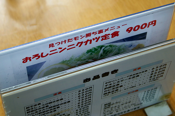 「漫画に出てくる伝説の食べ物はどこに・・・?」と思いながら注文したのは、「のぶた丼(バージョンⅡ)」(750円)、見たモン勝ち裏メニュー「おろしニンニクカツ定食」(900円)、「Aセット・のぶた丼とラーメン定食」(1,000円)です。