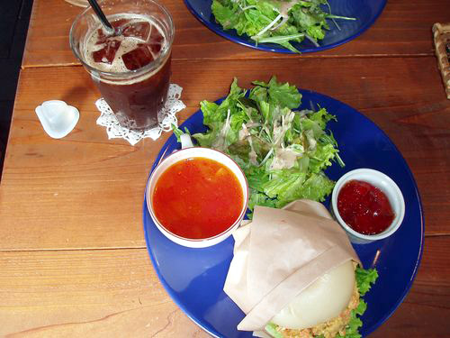 見ていると組合せで色々と食べてみたくなりますが、友人はアボカドとトマトのサルササンド(850円)とホットコーヒーを、私はチキンサラダサンド(790円)とアイスコーヒーを選択です。