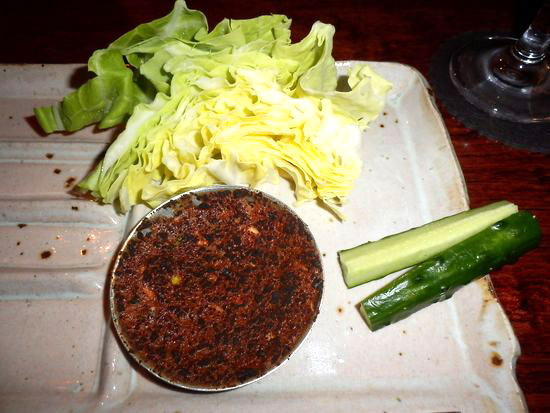 右はお通しの生きゃべつときゅうり。