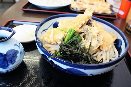 天ざるうどん天ざるうどん(並)。コレは冷たいうどんと海老天2本、さつま芋の天ぷらが別々にやってきます。900円。一番うどんのコシなどの旨さが分かるメニューだと思います。スルッと入っていきます。様々好みはあるかと思いますが、肉汁うどんに慣れ親しんでしまったらば、少し物足りないかもしれません。肉汁うどんとは別のメニューを頼むと、お腹は満足でも、何故か気持ちが肉汁うどんを食べたくなってしまうのです。