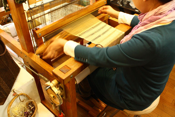 はた織りの様子実際に、はた織り機で織られた織物が使われている手作りなので、どれ一つ取っても同じものが無く、1点ものとしての良さが感じられます。